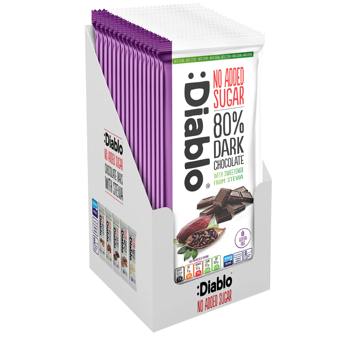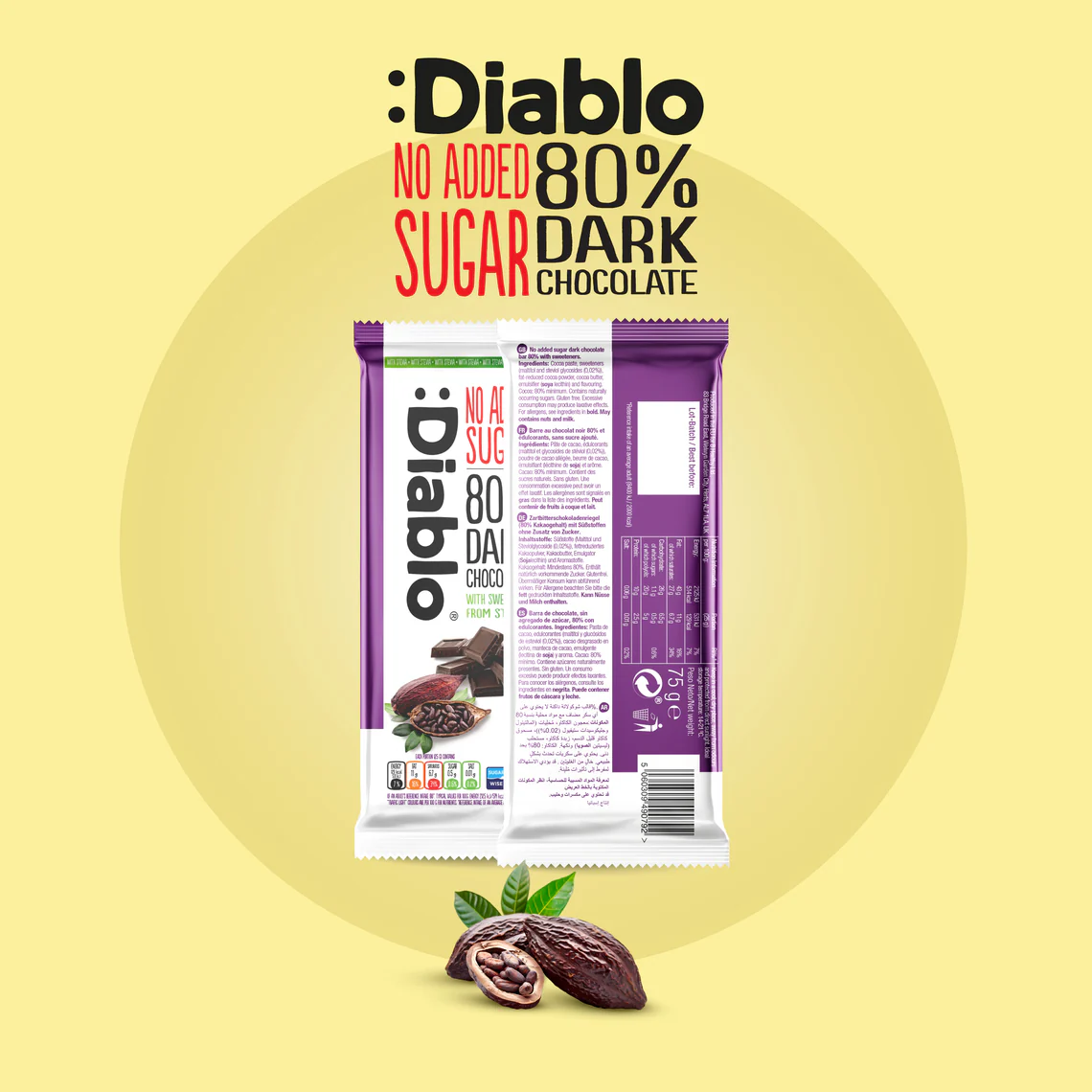 شکلات تلخ دیابلو با 80% کاکائو و استویا (75 گرم)