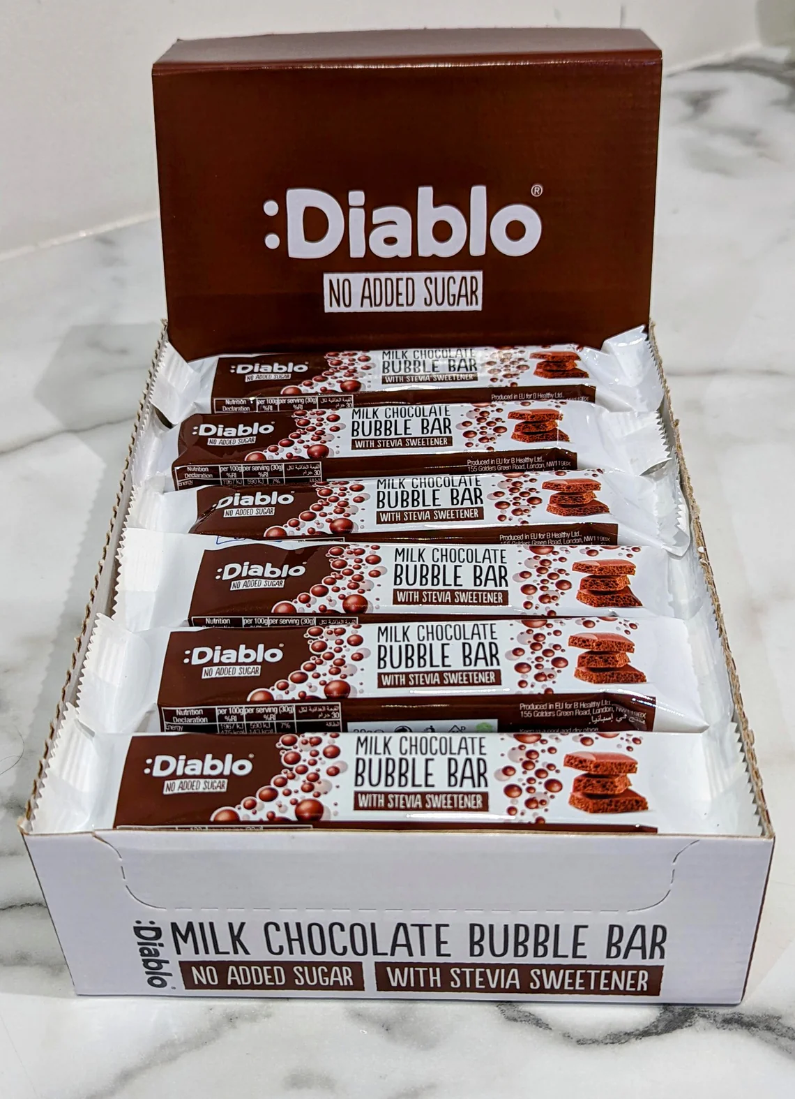 شکلات حبابی دیابلو ترکیبی بینظیر از شکلات شیری و حبابهای هوا است که باعث میشود هر لقمه طعمی نرم و سبک به همراه داشته باشد. این شکلات با طعم شیرین و خوشمزه خود، انتخابی عالی برای کسانی است که به دنبال یک شکلات بدون شکر افزوده هستند.